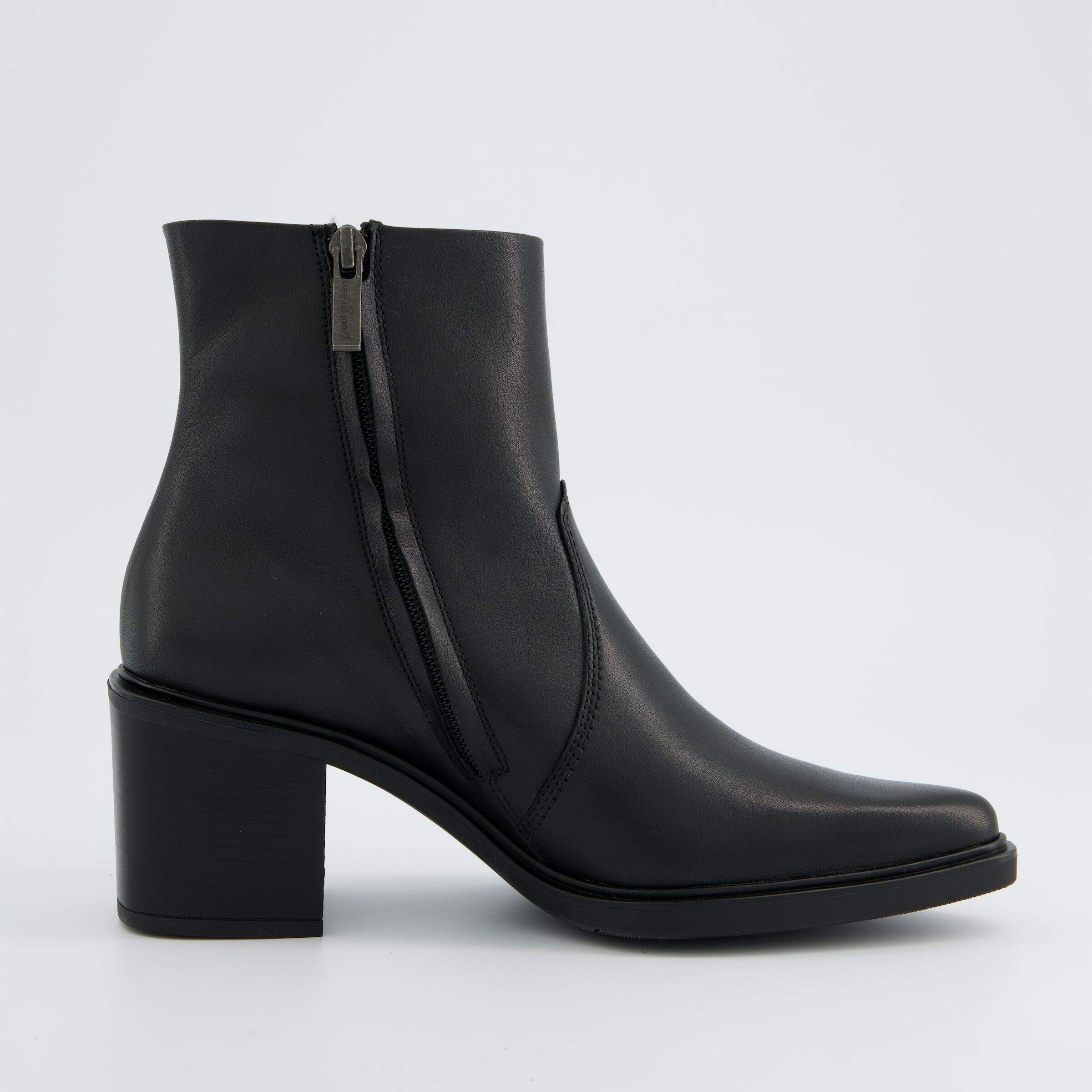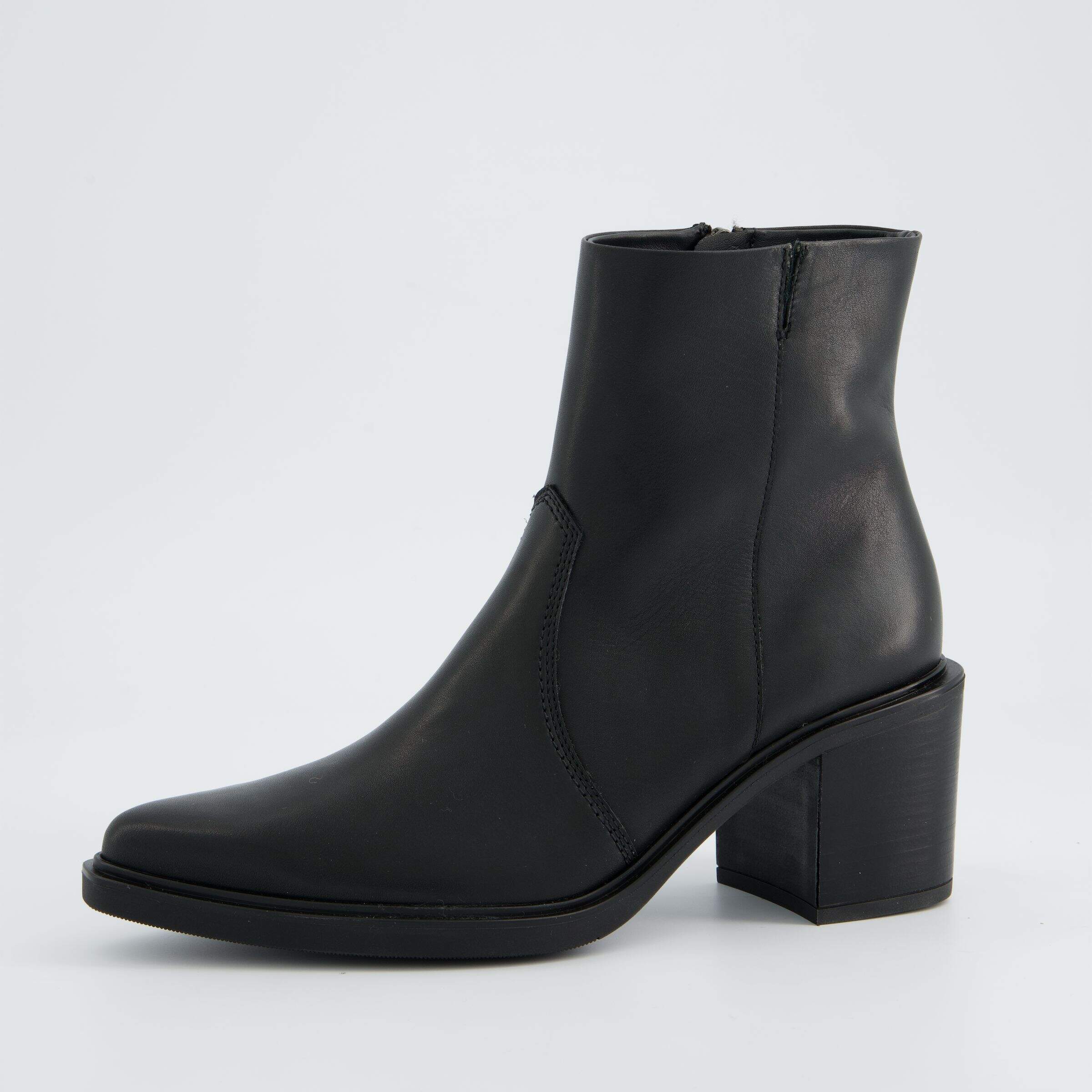 Beispiel-Outfit: Schwarze Lederstiefel mit einer eleganten Anzughose, einem Blazer und einer Seidenbluse – perfekt für das Büro.